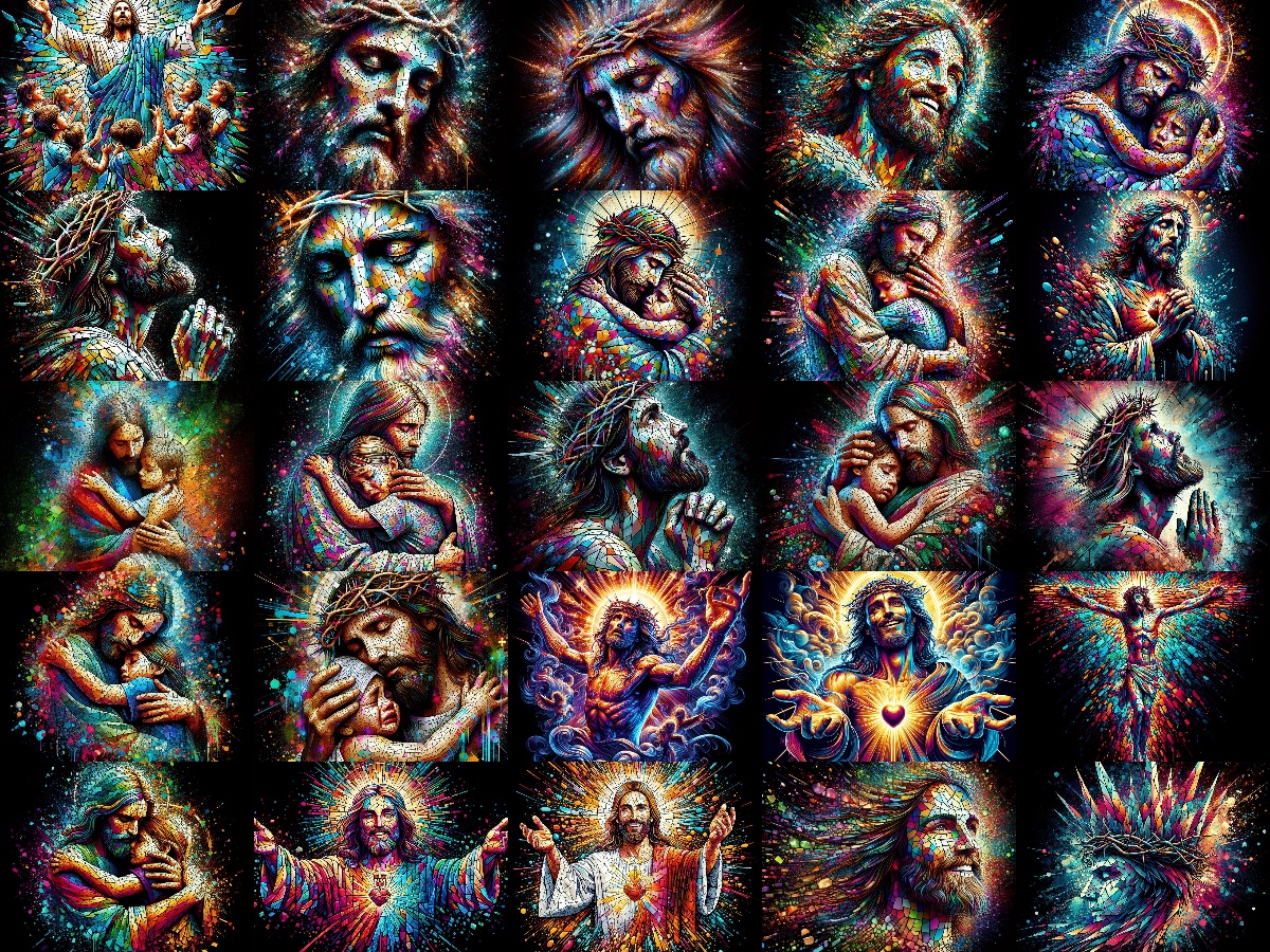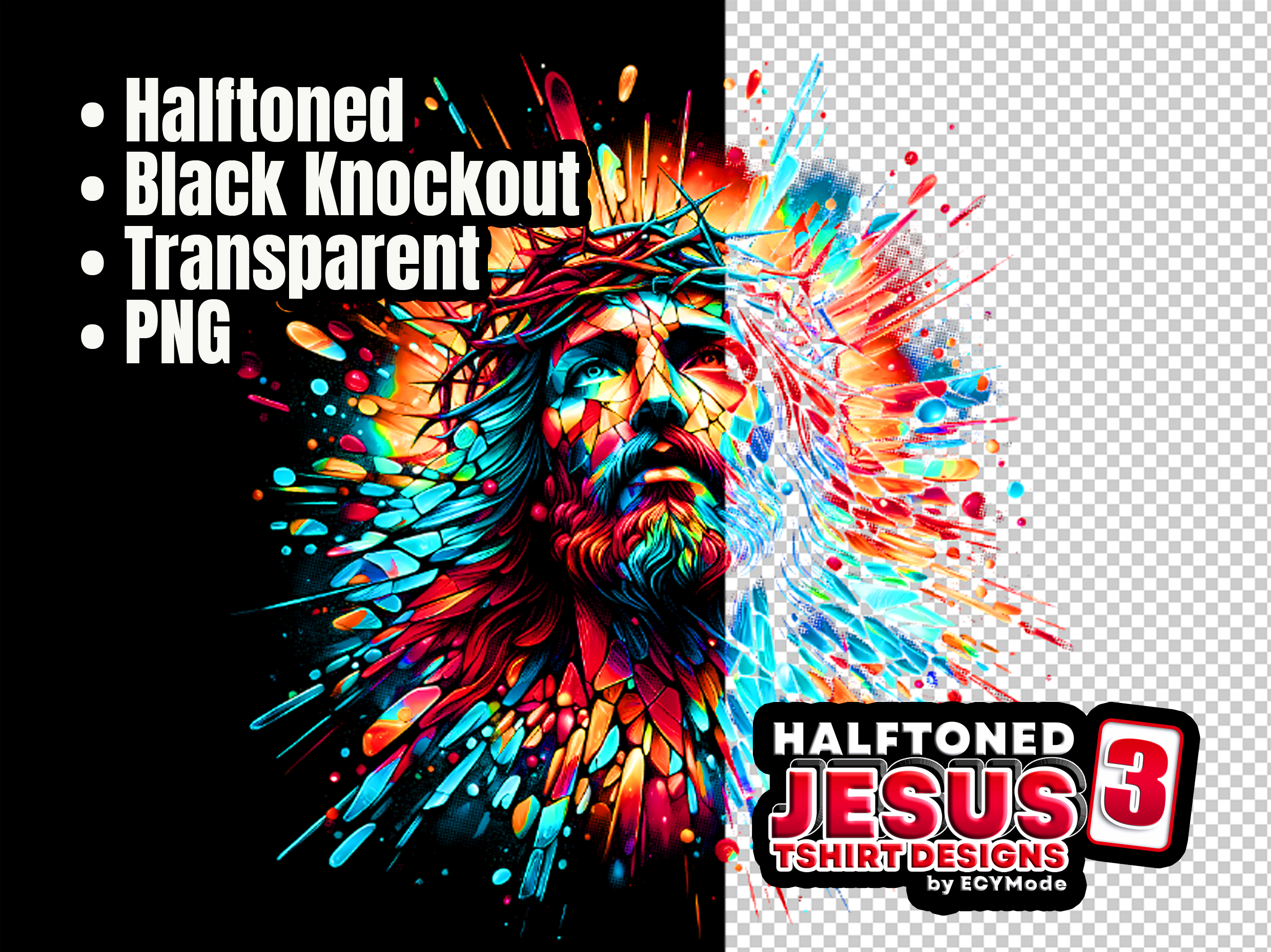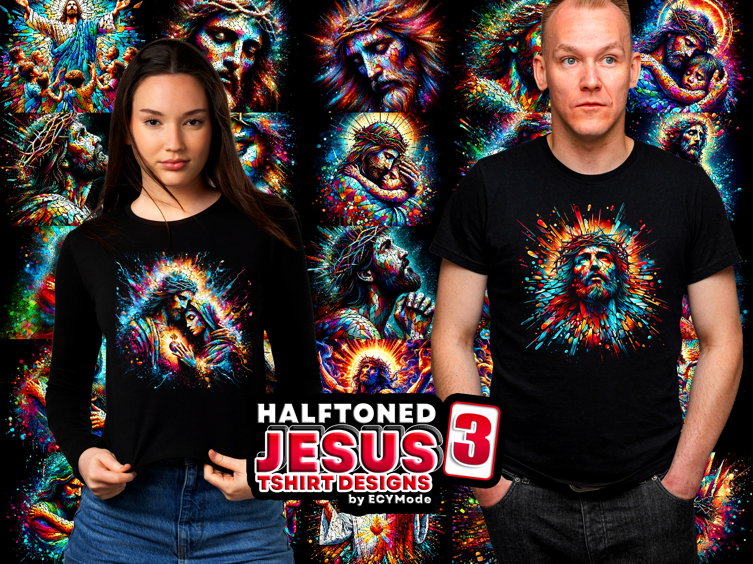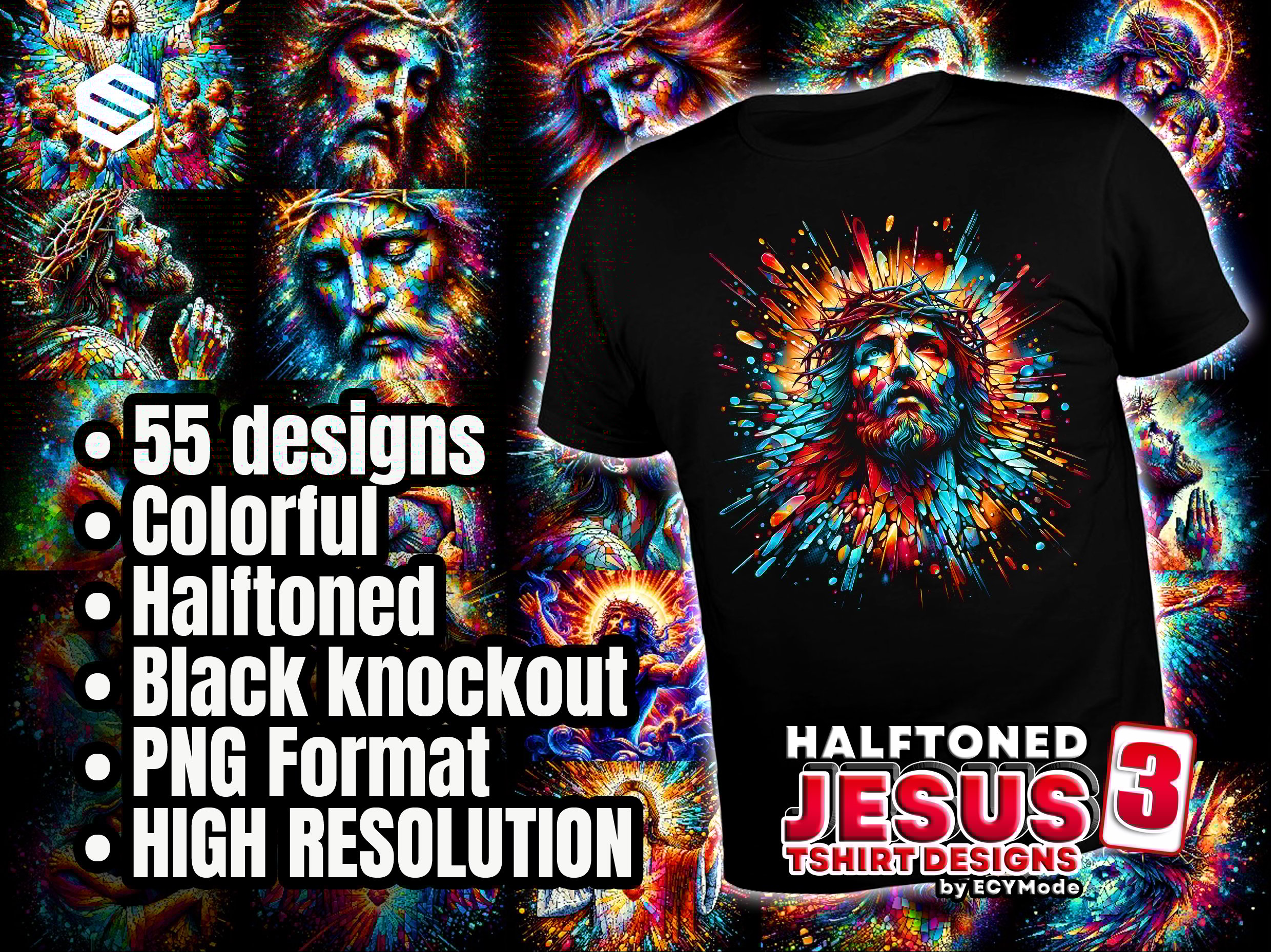 50+ Halftone Jesus Christ Religious Bundle, DTF Png Bundle, DTG Shirt Designs, Tee Graphics, Screen Printing Designs, Digital Halftone